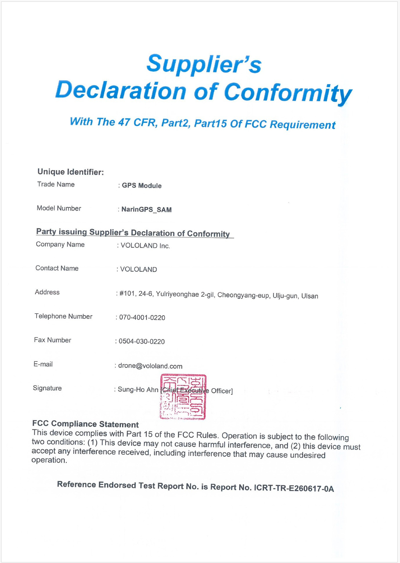 FCC인증서 (NarinGPS-SAM)